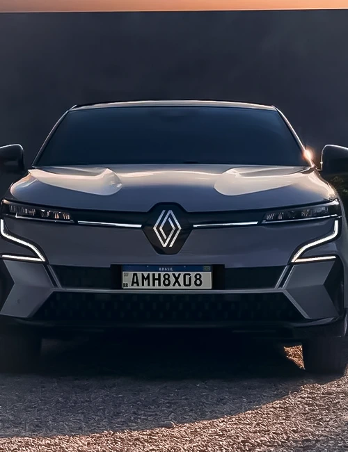 o Renault Megane E-Tech 100% elétrico tem crossover esportivo com design inovador, pensado para os motoristas mais exigentes. Aerodinâmico, com linhas modernas, fluidas e sofisticadas, as rodas de liga-leve têm 18" e luzes de LED.