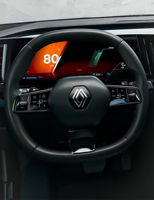 o Megane E-Tech 100% elétrico reinventa o prazer de dirigir graças à direção precisa.
